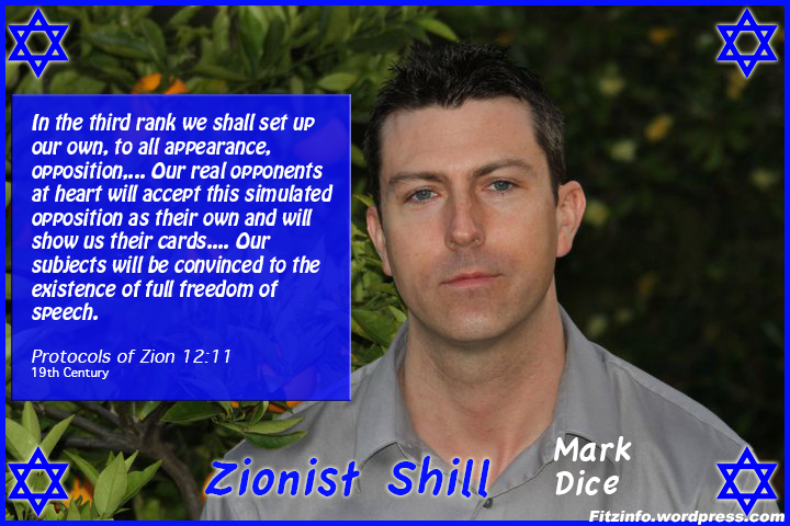 This is pretty funny. One article I just read is calling Mark Dice and Alex Jones anti-semetic CIA agents and this one is calling them Zionist Jews that work for the Mossad. My question is, is where is the PROOF these guys are zionists? I know Jones supports Fritz Springmeier who IS the real deal and has real inside knowledge. I’m not saying that they are not agents but I am saying that you haven’t presented any real evidence that proves it.