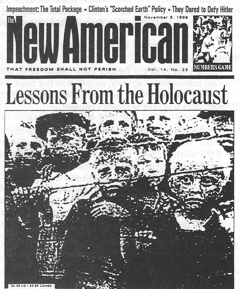 Today, JBS publishes The New American. Proving Oliver correct, on Sept. 13, 2011, JBS published an article by the Jewish Sam Blumenfeld endorsing the official kosher story of the 9/11 WTC attack.[19] Birch writer John Rees is alleged to be an “Israeli intelligence agent.”[20] Rees also allegedly provides intelligence to the CIA, FBI, and NSA.[21] JBS has also propagated the Holocaust dogma of Judaism.[22]