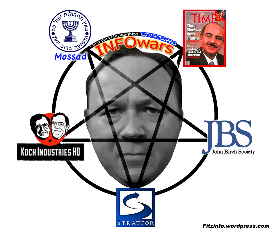 Regular readers know that I have been onto Alex Jones’ disinfo trail for some time. One of the first big articles I wrote exposing Jones, with much credit to Daniel Hopsicker, revealed a possible connection of Jones to Israeli intelligence through Saudi arms dealer Adnan Khashoggi, who is as big as anybody in The Octopus—a moniker for the Judeo-Masonic criminal network, especially as it was revealed in the 1980s with arms scandals and BCCI. Like many Saudi elites, Khashoggi is an Israeli Mossad asset. (See: The Growing Complexity of Alex Jones’ Israeli Connections). There is yet another possible connection between the two characters, this time through our hosts of the evening, the Kochs.
