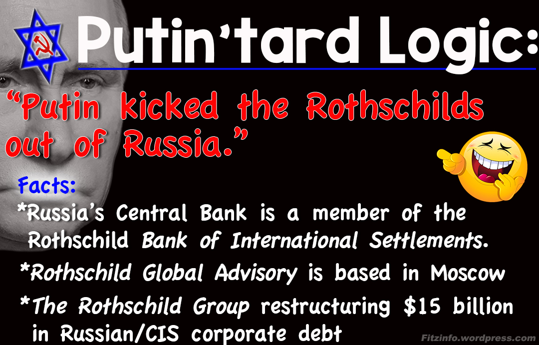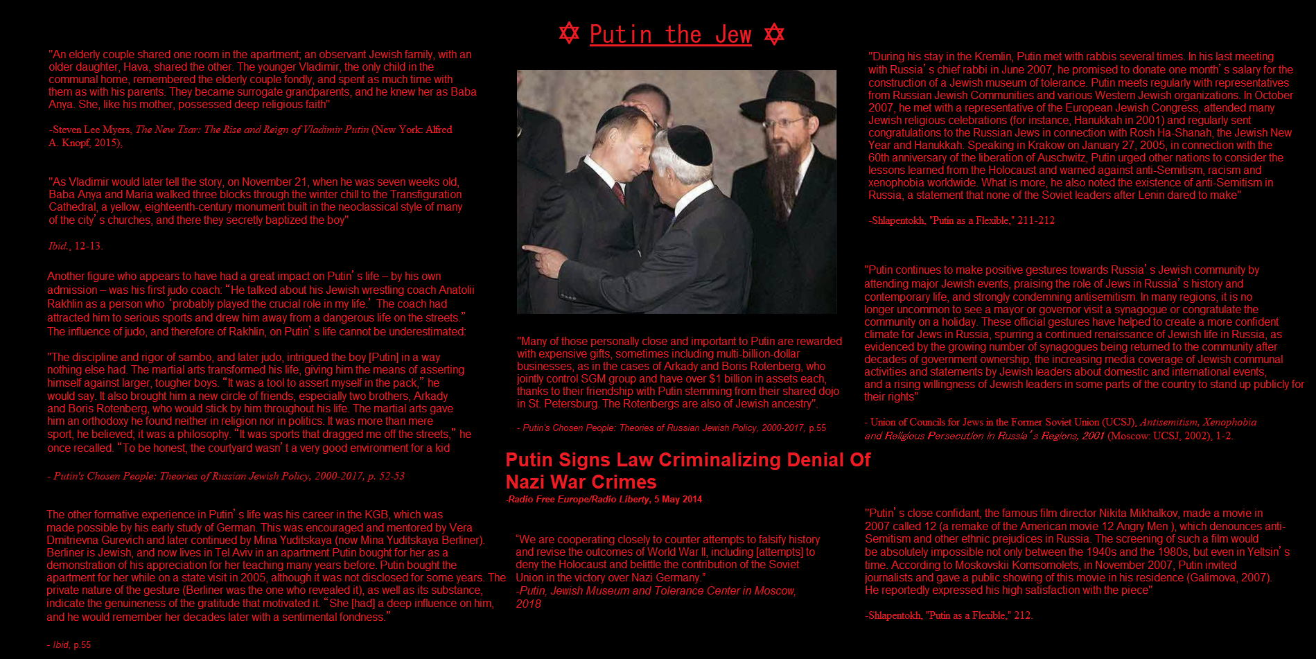 Exposing Russian president Vladimir Putin and his crypto-Soviet state for the Judeo-masonic, Chabad mafiya collaborators that they are.