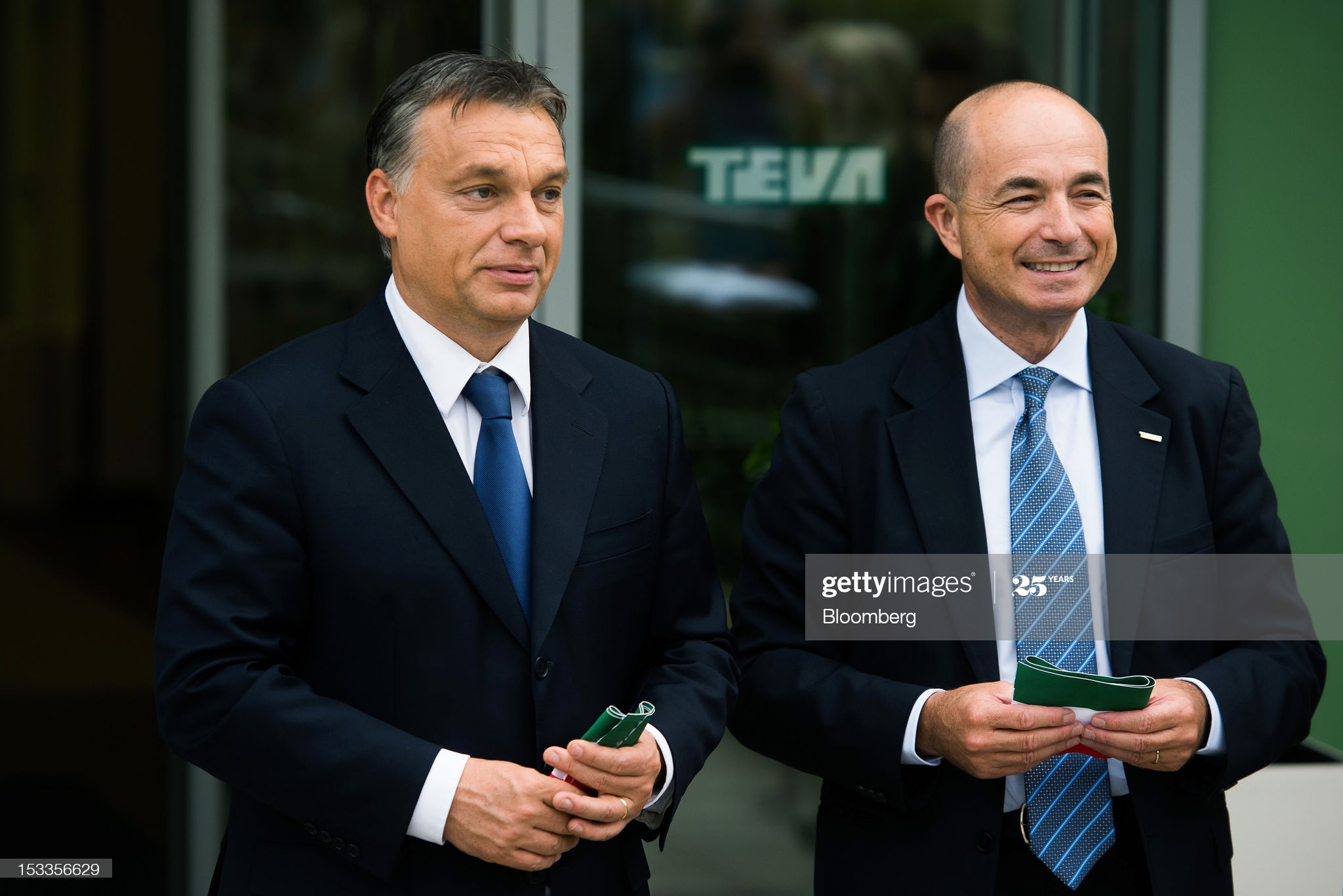 Viktor Orban, Hungary’s prime minister, left, and Jeremy Levin, chief executive officer of Teva Pharmaceutical Industries Ltd., attend the opening of Teva’s new factory in Godollo, Hungary, on Tuesday, Oct. 2, 2012. Teva, the world’s largest generic-drug maker, pulled a copy of the antidepressant Wellbutrin XL from the U.S. market after regulators said it isn’t the same as the brand-name medicine. Photographer: Akos Stiller/Bloomberg via Getty Images