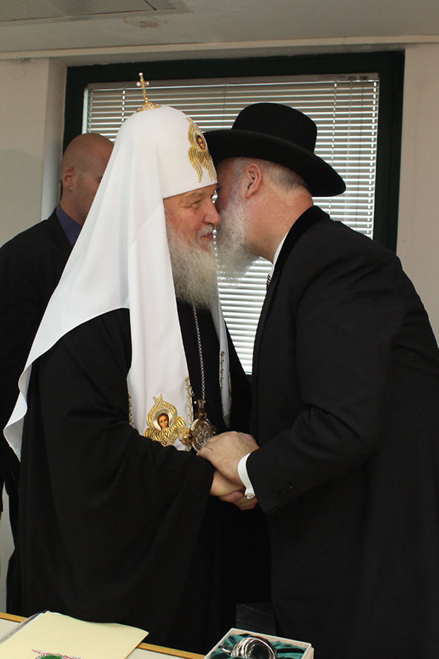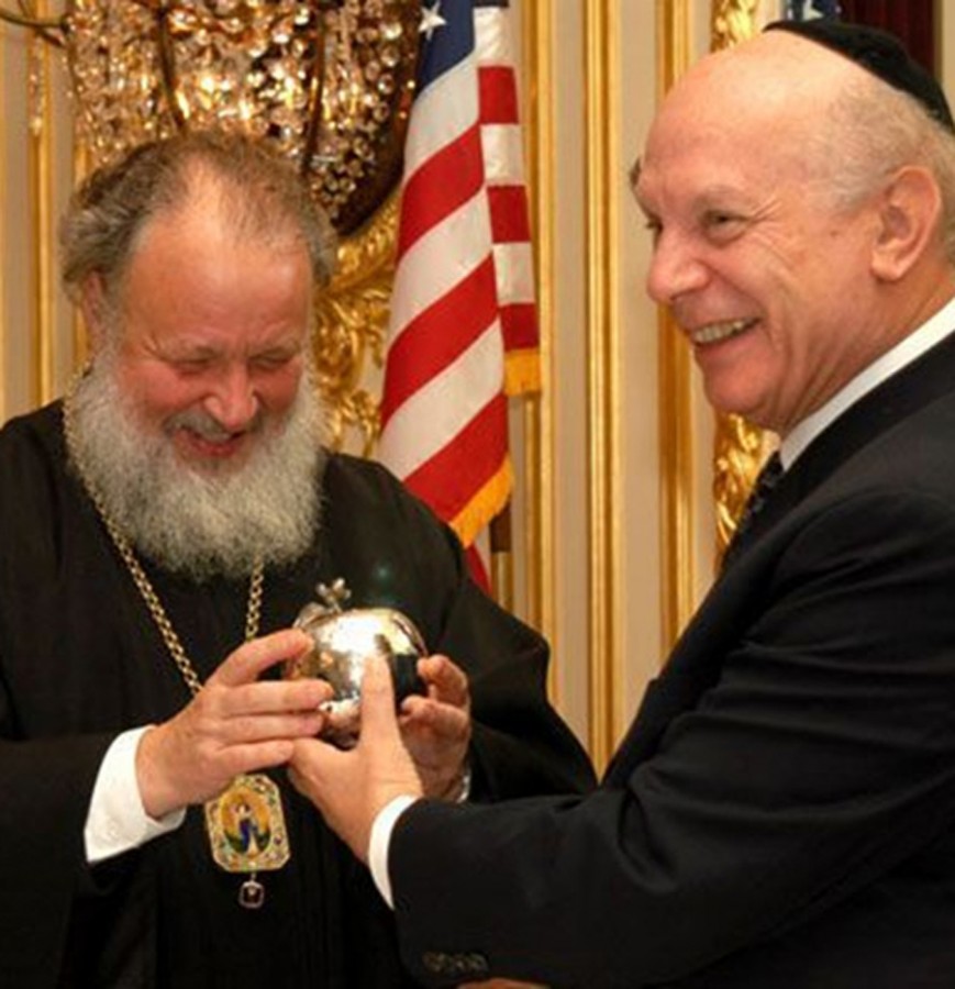 The Jew in the above picture, giving the apple to Kirill is Rabbi Arthur Schneier