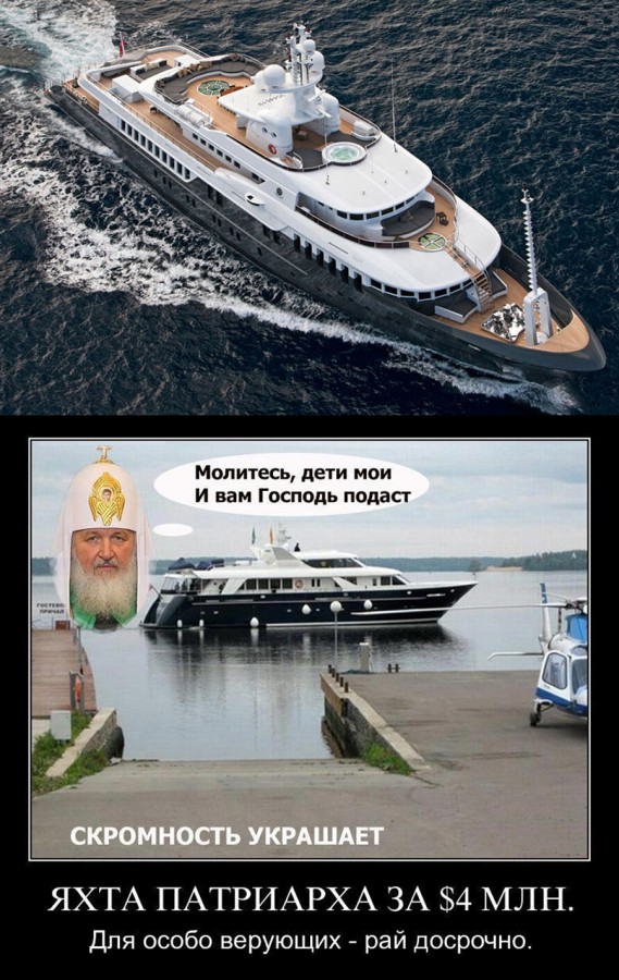 About how the High Priest of the Putin Reich, Patriarch Kirill (he is already a KGB agent Mikhailov) amassed his billions of dollars in speculation in tobacco, alcohol, and oil (exempted from taxes and excise taxes) in the dashing 1990s, how he, the head of the bandit empire of the Russian Orthodox Church, eliminated its competitors, many have already written.