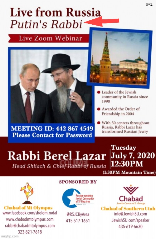 Putin’s CHABAD Rabbi Berel Lazar: