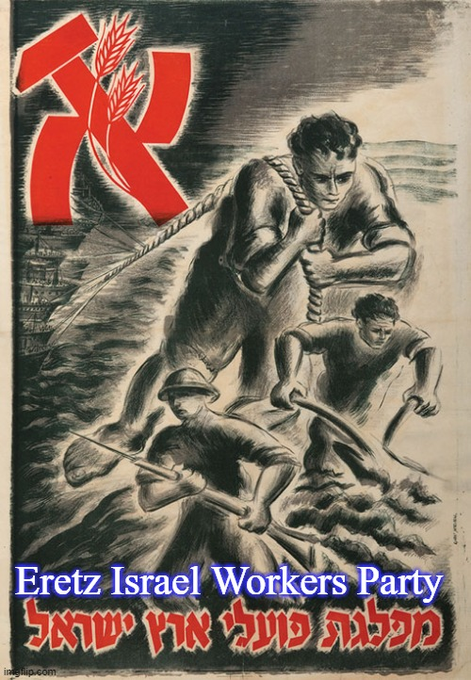 “Israel was founded and directed in its first 47 years by the Mapai party (founded in 1930), which in 1968 became Avodá: Labor Party. Although Mapai (Mifleget Poalei Eretz Yisrael – Israel State Workers Party) was called Social Democrat or Socialist Democrat, it was affiliated with the Soviet Socialist International. Its main members, such as David Ben-Gurion, Golda Meir, Shimon Peres and others, were individually affiliated with the Socialist International. It would be foolish to imagine that the Socialist International, affiliated non-Communist individuals and political parties. The initial symbol of Mapai, used in the elections of the first 10 years of the State of Israel, was the letter ‘Aleph’ stylized as a hammer and sickle, in red, so that there was no doubt.”