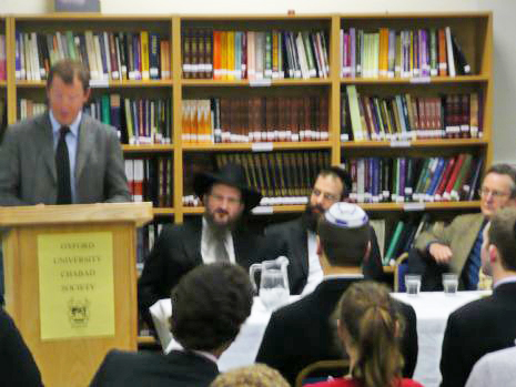 My call to fame is actually being Mr. Rothschild’s friend and it is a pleasure to honour Mr. Rothschild and David Slager for what they have done here in Oxford for the Oxford University Chabad Society, with the opening of the Slager Chabad Centre, under the leadership of Rabbi Brackman. It should be a lesson for many of us not to forget ones Alma-Ata. Not to forget what one received and remember to give back. Another reason I am here is in honour of Elliot Shear who has sponsored tonight’s lecture in memory of his grandfather, Joseph Graham.