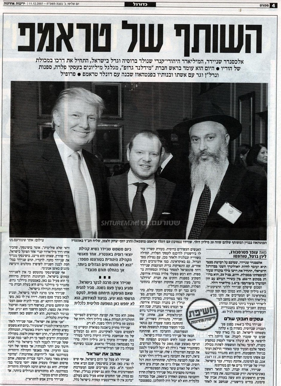 Over more than half of the page, a picture of Schneider was printed with a Chabad emissary and rabbi of the community for Russians in Ontario, Rabbi Yosef Yitzhak Salzman , who Schneider serves as president, alongside the American Jewish billionaire Ronald Trump .