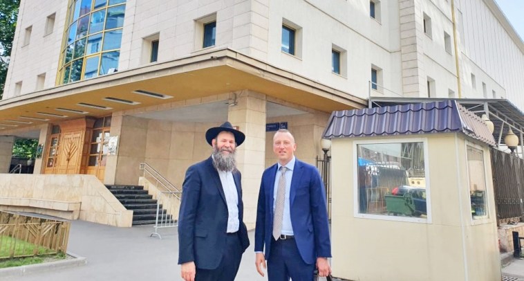 Aeroflot CEO Villin Halichenko (right) at a Chabad shliach in Moscow, Russia.