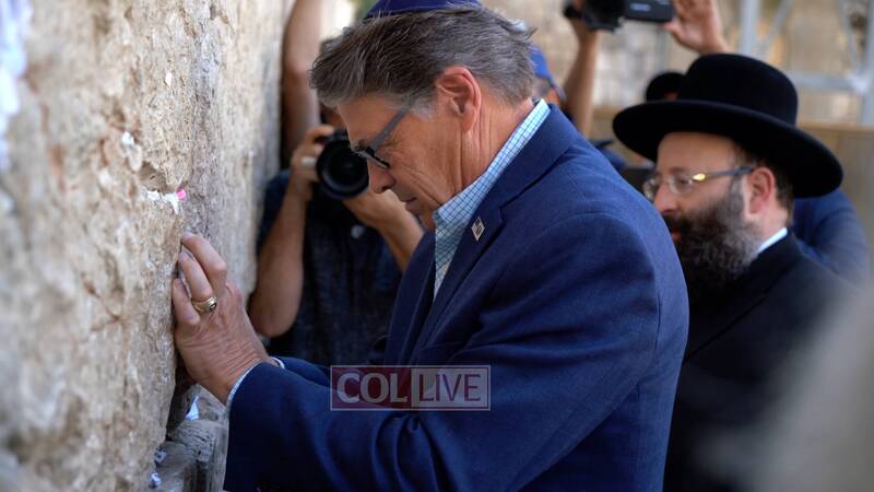 US Energy Secretary Rick Perry was accompanied by Washington, DC Shliach Rabbi Levi Shemtov for a visit to the Kotel in Jerusalem as he began his official visit to Israel, July 21, 2019.