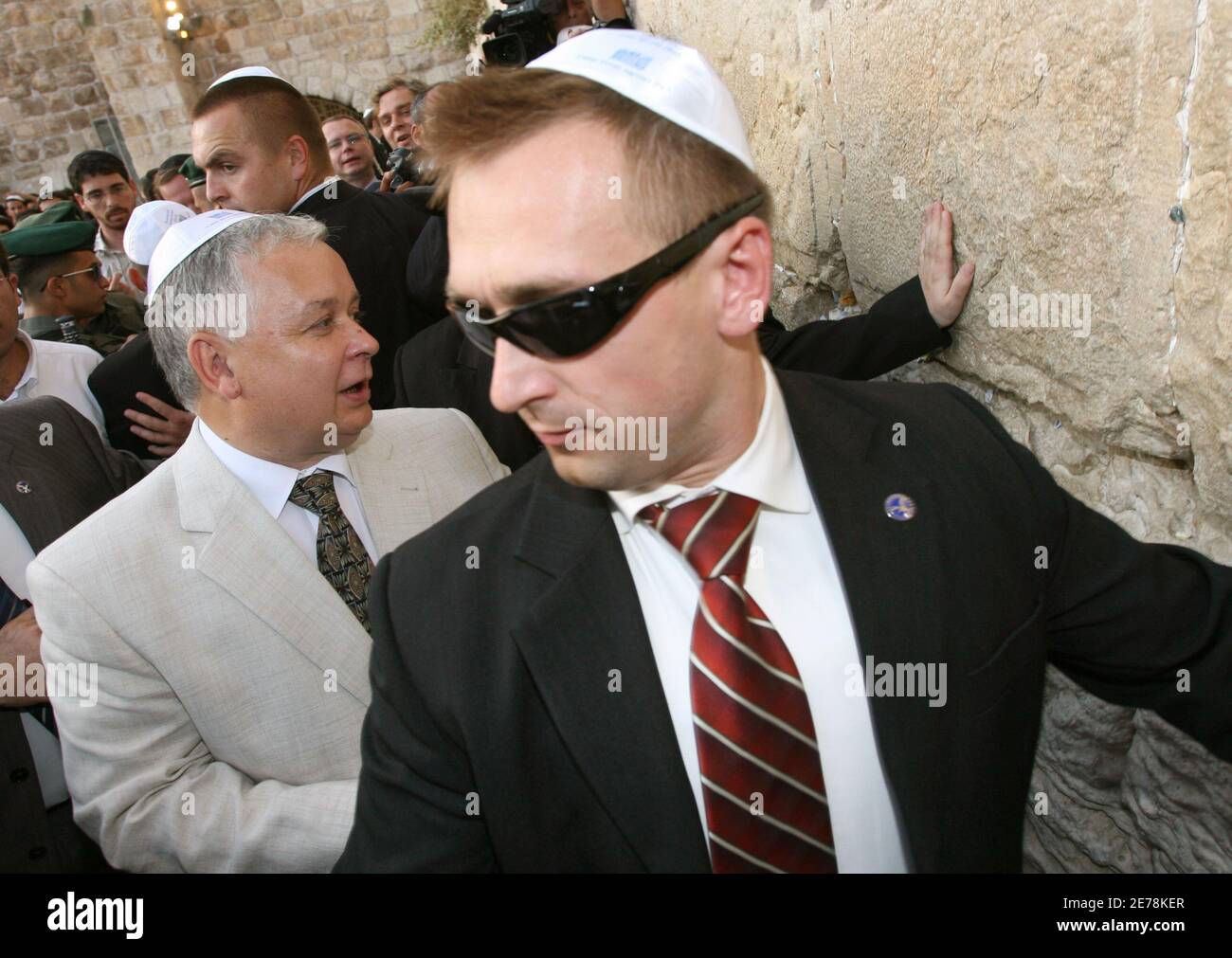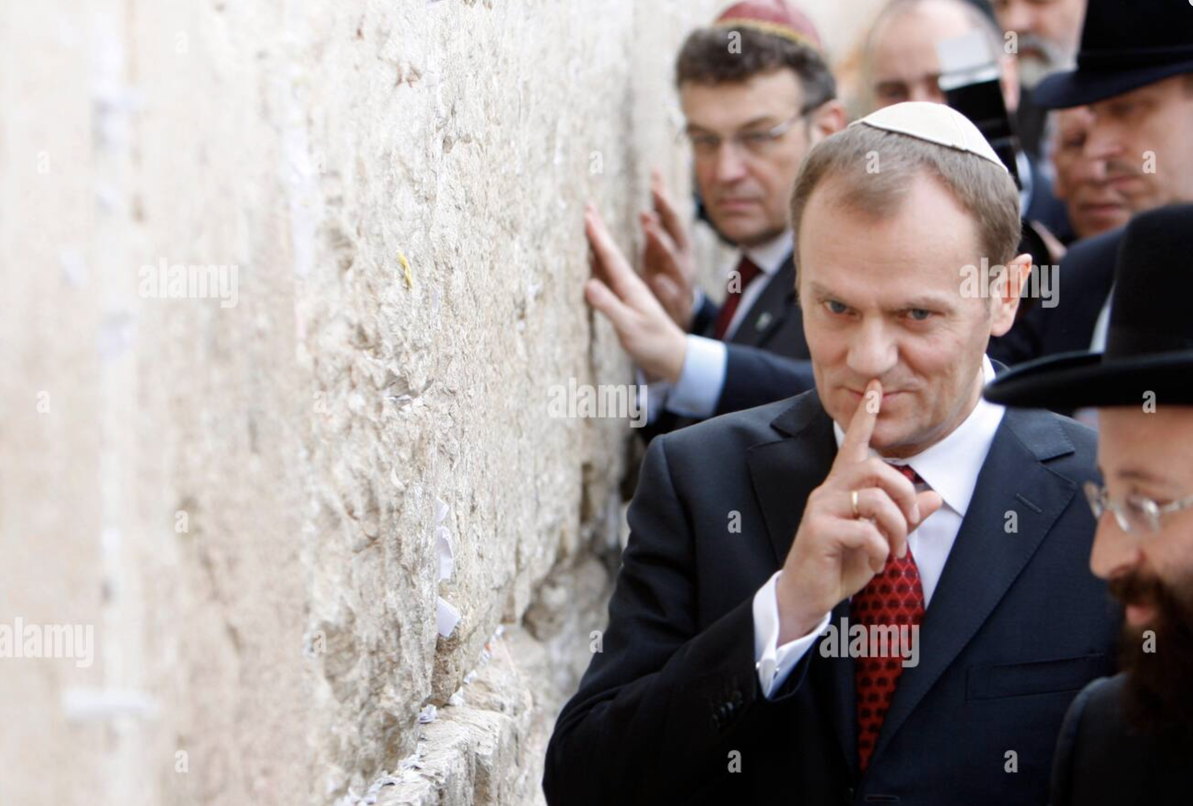 Poland’s Prime Minister Donald Tusk visits the Western Wall, Judaism’s holiest prayer site, in Jerusalem’s Old City April 9, 2008. REUTERS/Ammar Awad (JERUSALEM)