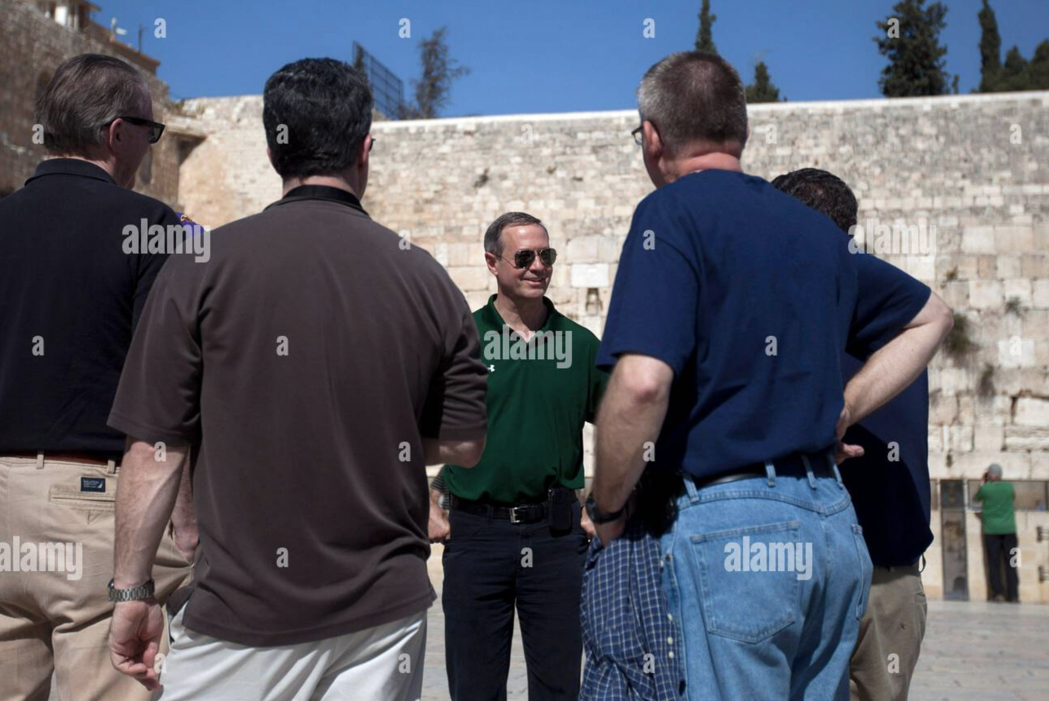 Maryland Gov. Martin O’Malley, center, speaks to other visitors at the Western Wall, the holiest place where Jews can pray in Jerusalem’s old city, Friday, April 26, 2013. (AP Photo/Sebastian Scheiner)