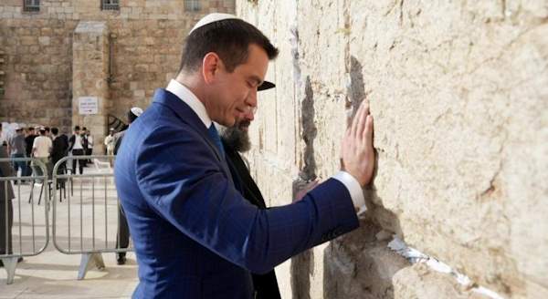 Miami Mayor Francis Suarez visited the Kotel in Jerusalem with Rabbi Getzy Fellig and expressed “gratitude for the opportunity.” February 12, 2018.