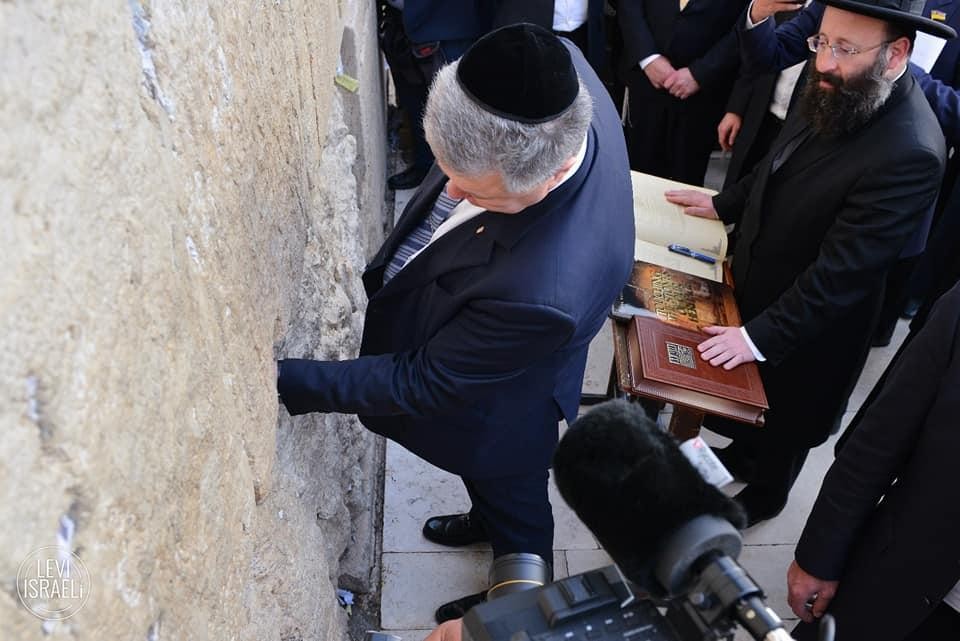 The president-elect of Guatemala, Mr. Alejandro Giammettei, arrived at the Western Wall Sunday morning, prior to taking office as president of Guatemala (Dec. 8, 2019).