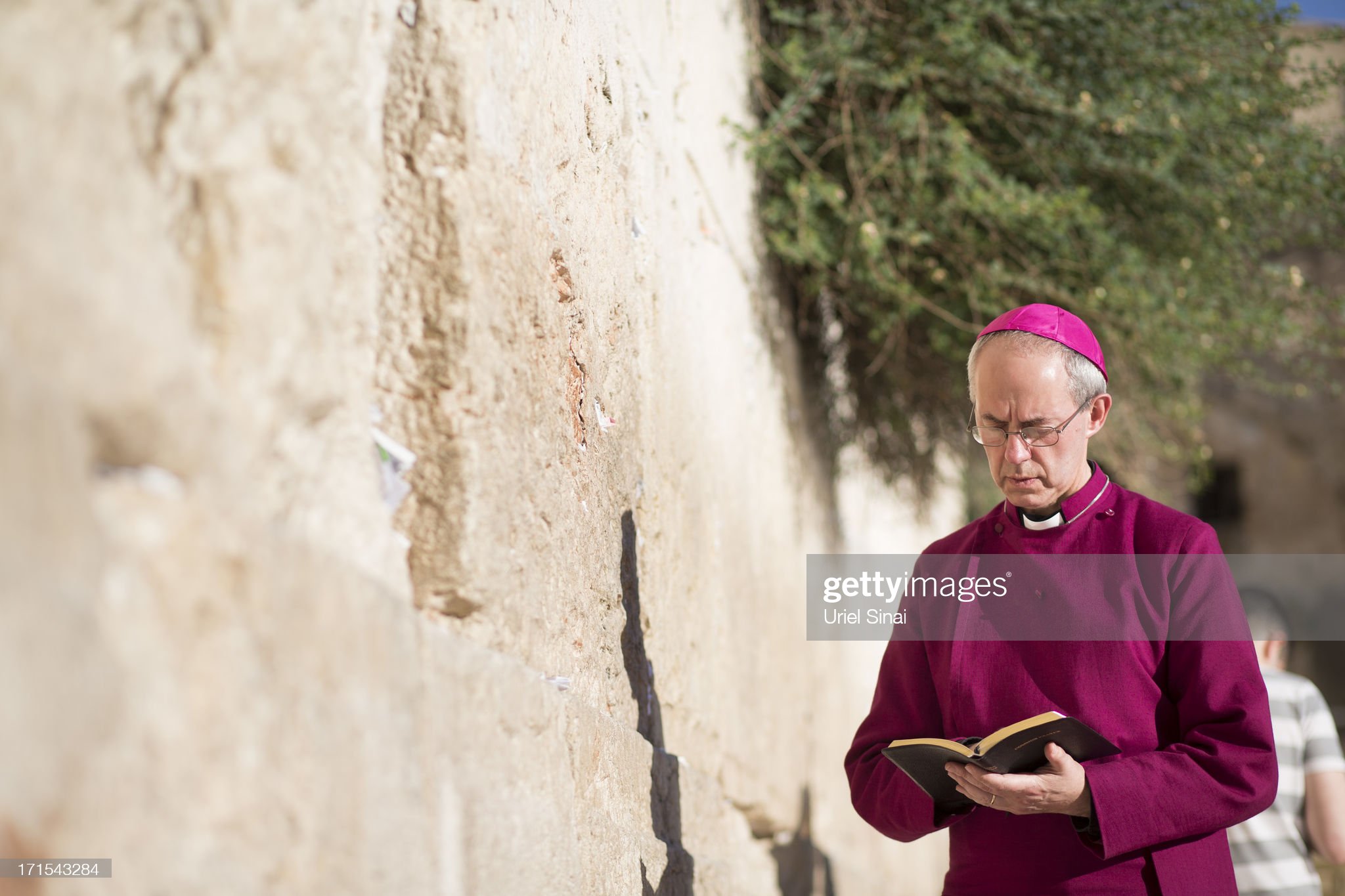 JERUSALEM, ISRAEL – JUNE 26: Archbishop of Canterbury Justin Welby prays at the Western wall on June 26, 2013 in Jerusalem’s old city, Israel. The Most Reverend Justin Welby is on a five-day tour of Egypt and the Holy Land to visit a number of leaders and famous sites. (Photo by Uriel Sinai/Getty Images)