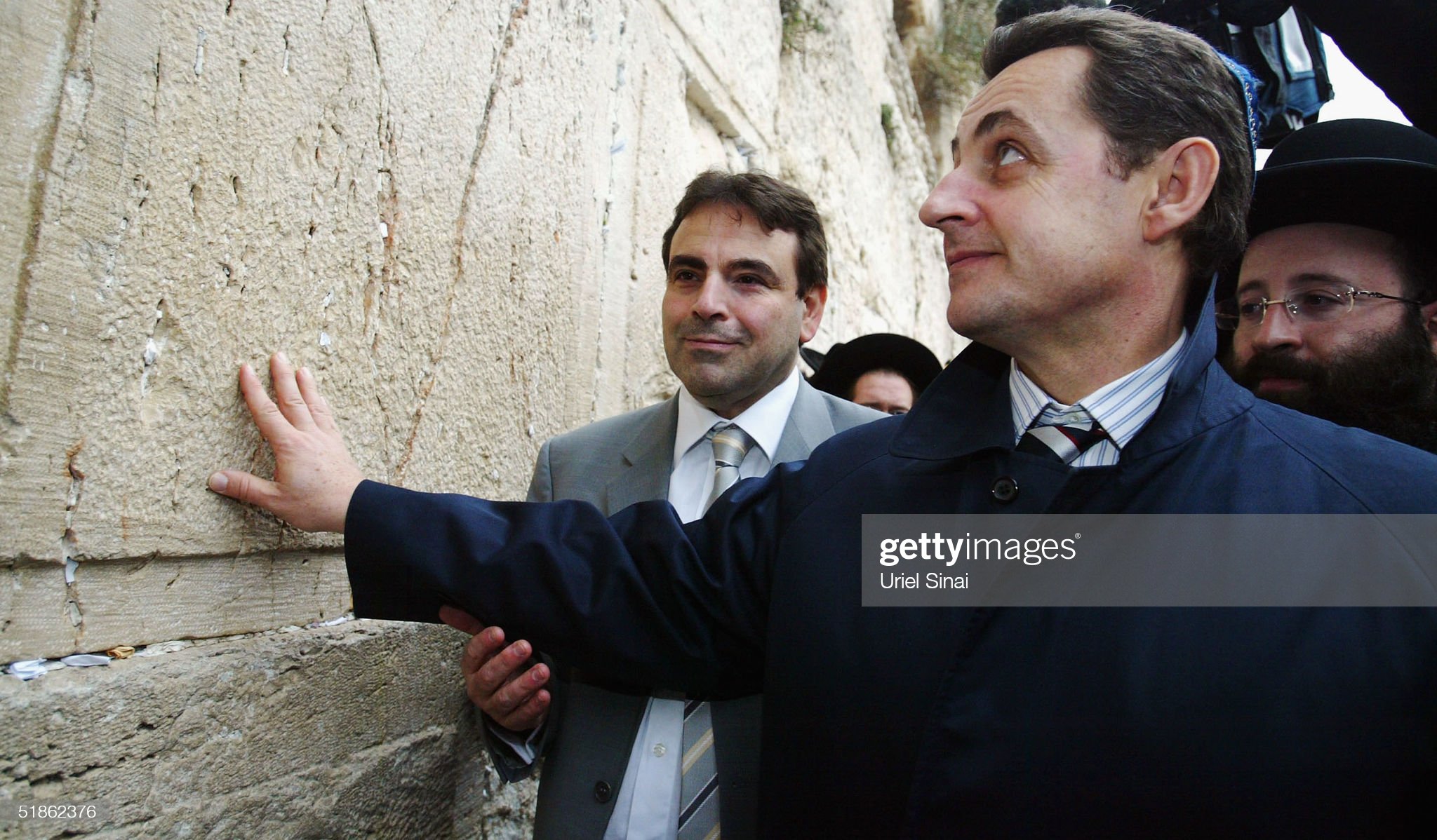 JERUSALEM, ISRAEL—Visiting French presidential candidate Nicolas Sarkozy tours the Old City and visits the Western Wall, on December 15, 2004 in Jerusalem. Sarkozy is in Israel for a 3-day visit. (Photo by Uriel Sinai/Getty Images)