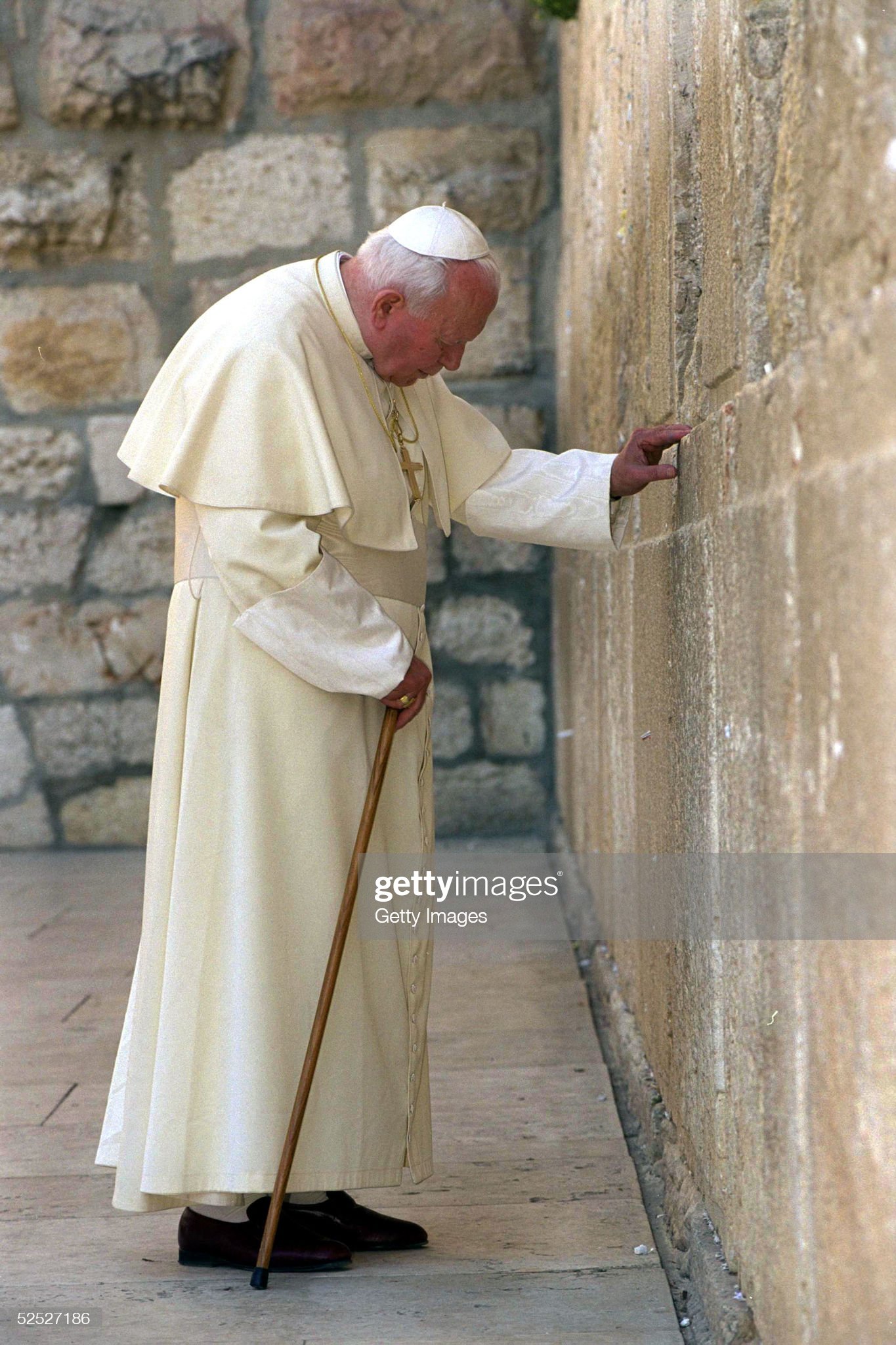 JERUSALEM, ISRAEL – MARCH 26: Pope John Paul II places his letter to God between the ancient stones of the Western Wall, Judaism’s holiest site March 26, 2000 in Jerusalem’s Old City. (Photo by Amos Ben Gershom/GPO via Getty Images)