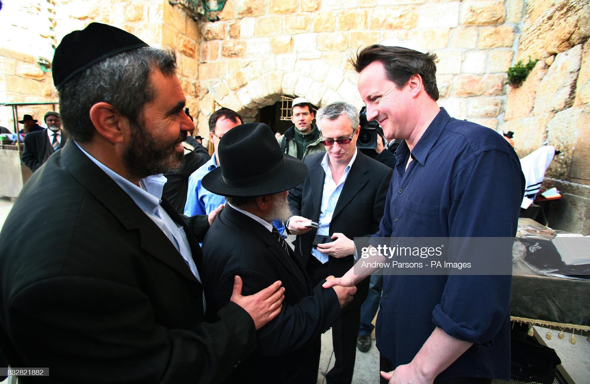 Leader of the Conservative Party David Cameron meets jews at the Western Wall in the old City of Jerusalem, Israel during his two-day visit to the country. (Photo by Andrew Parsons – PA Images/PA Images via Getty Images)