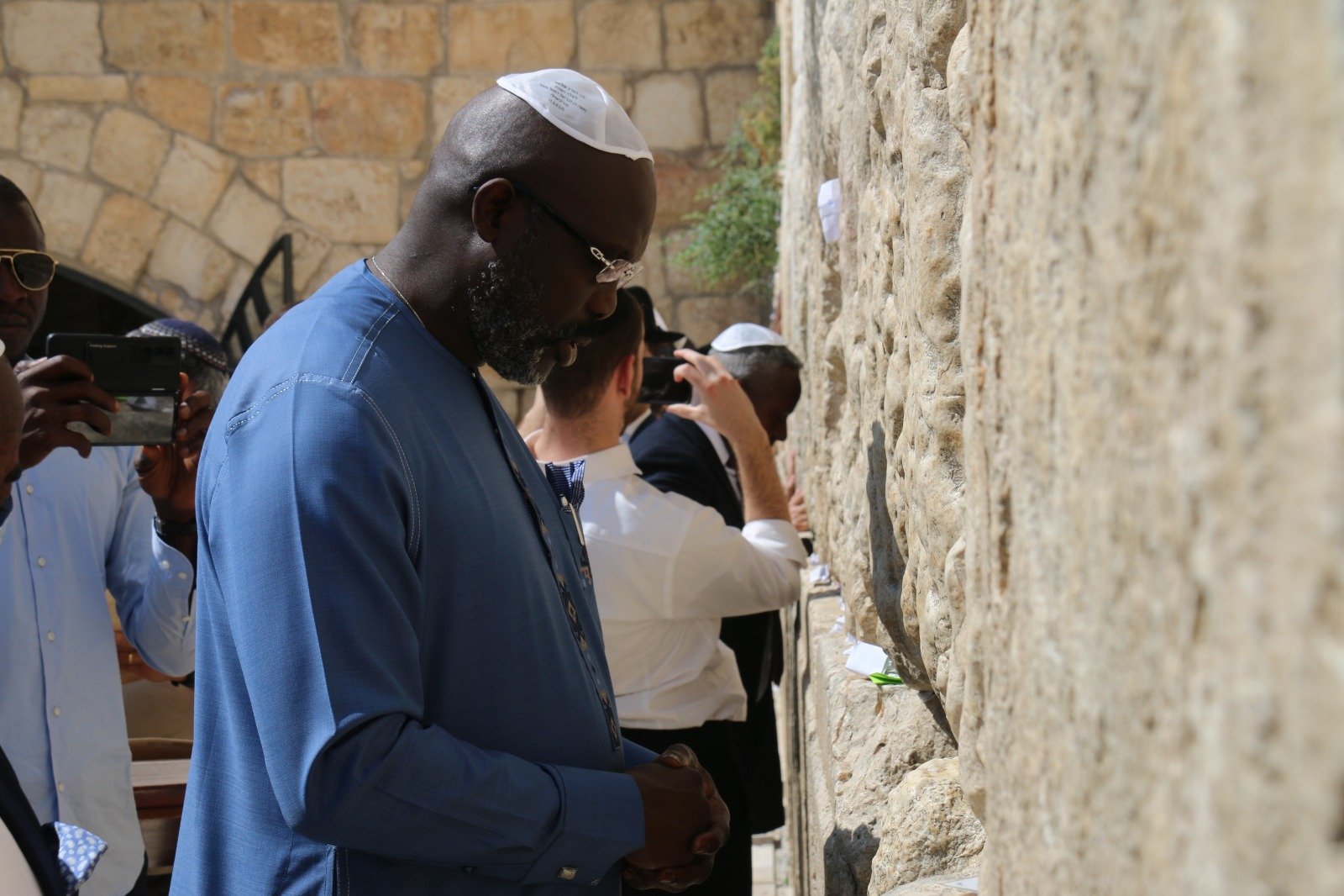Liberia’s President George Weah visits the Western Wall for the third time July 4-5, 2023. “I put my note in the Western Wall to God that Timothy will be the greatest player in the Italian league,” Weah told Herzog. See video here.