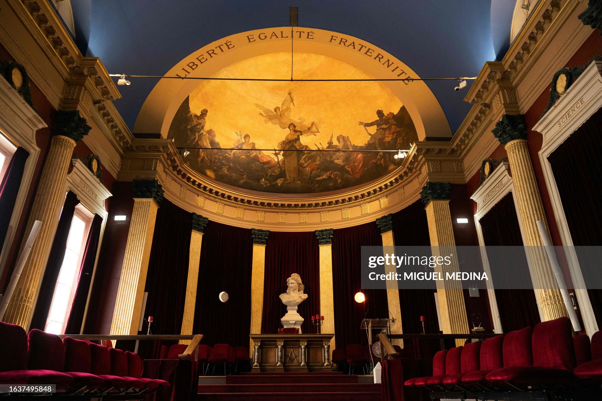 This photograph taken in Paris on September 1, 2023 shows the Arthur Groussier temple at the headquarters of the Freemasonic organization The Grand Orient de France (GODF). (Photo by MIGUEL MEDINA/AFP via Getty Images)