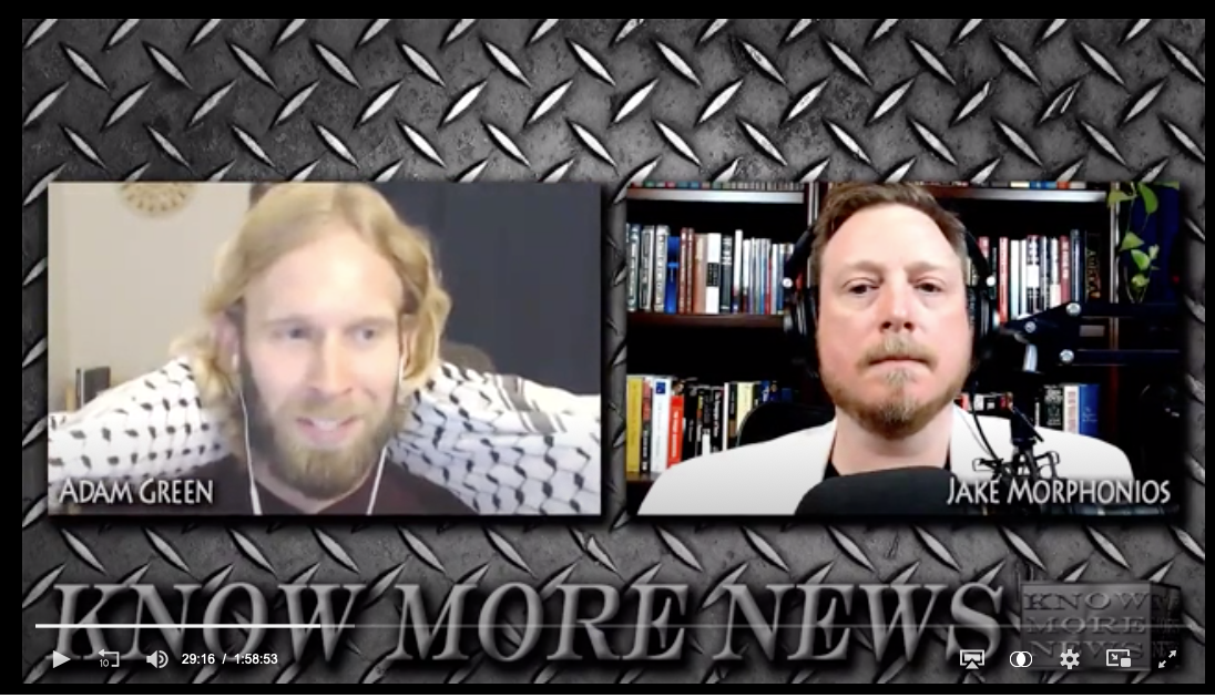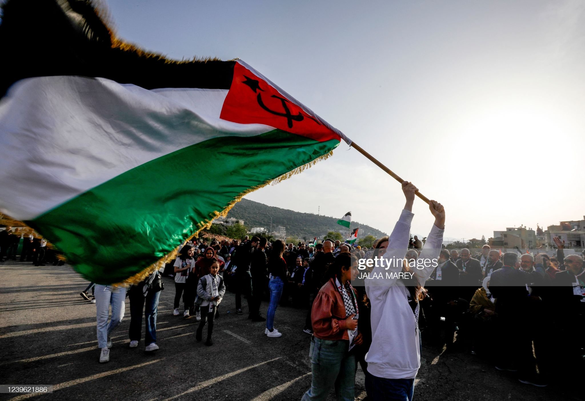 Arab-Israelis march with a Palestinian flag bearing a hammer a sickle and a star, during a rally marking the 46th anniversary of Land Day, in the northern Arab-Israeli town of Deir Hanna in the northern Galilee region, on March 30, 2022. – Land Day commemorates the events of March 30, 1976, when Israeli troops shot and killed six people among Arab Israelis and Palestinians protesting land confiscations. (Photo by JALAA MAREY / AFP) (Photo by JALAA MAREY/AFP via Getty Images)A demonstrator sprays a Star of David symbol on the ground as members of the Lebanese Communist Party gather for a sit-in along the main road near Lebanon’s southern town of Naqoura close to the border with Israel on May 4, 2021, protesting against resumption of indirect talks on the demarcation of the maritime border. (Photo by Mahmoud ZAYYAT / AFP) (Photo by MAHMOUD ZAYYAT/AFP via Getty Images)Christ mythicist Adam Green and Jake Morphonios—who went to Palestine together and met with VIPs.Communist Nelson Mandela (C), wearing a keffieh, attends a meeting organized in his honour by the National Union of Algerian Youths, 18 May 1990, in Algiers. (Photo by ABDELHAK SENNA/AFP via Getty Images)