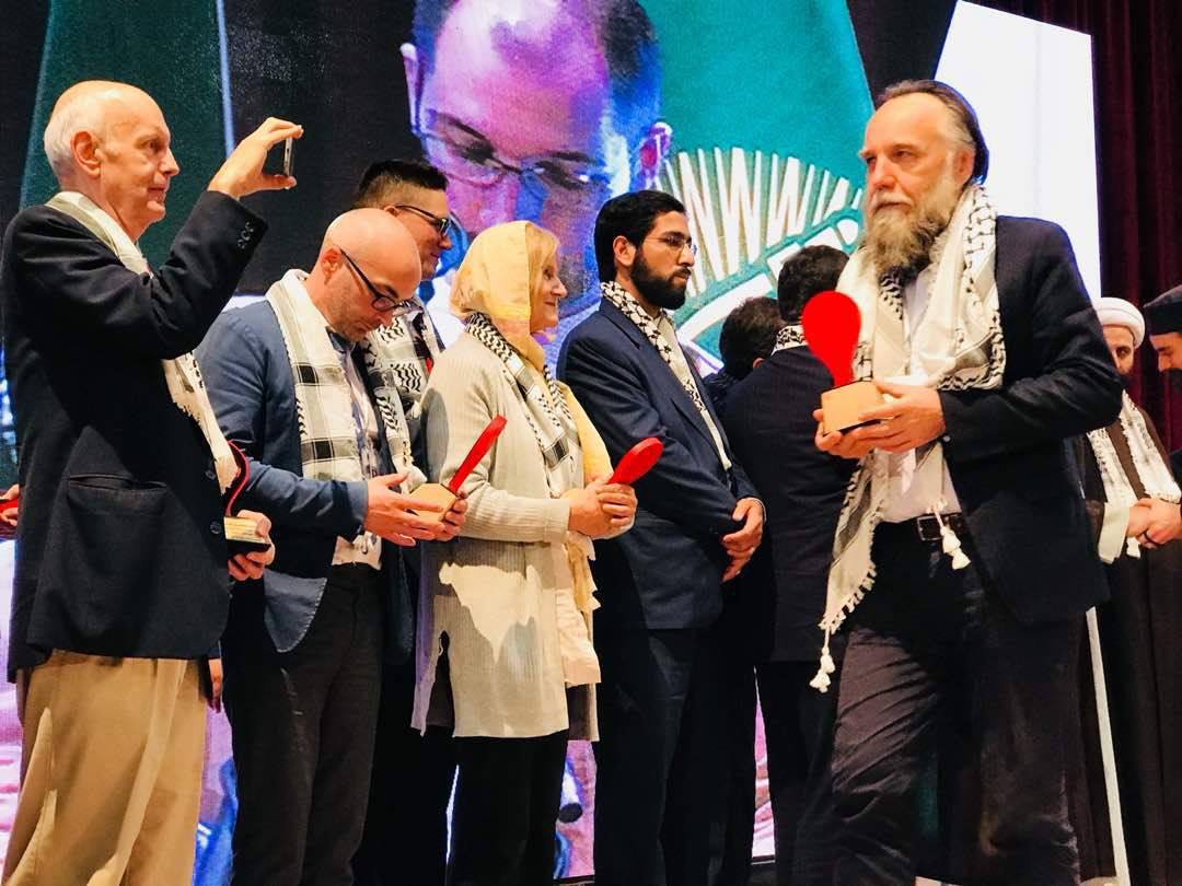 Keffiyeh-wearing Eugene Michael Jones and Aleksandr Dugin at one of many Soviet-sponsored Eurasianist conferences. Almost everyone else in this photo is wearing one.DuginJorge Bergoglio, aka Pope Francis, (L) presides over an open-air mass on May 25, 2014 at the Manger Square outside the Church of the Nativity in the West Bank Biblical town of Bethlehem. The mural behind Bergoglio blasphemously depicts the infant Christ Jesus swaddled in a Palestinian keffiyeh. (Photo credit should read ABBAS MOMANI/AFP via Getty Images) Also see: Vatican Nativity scene features Baby Jesus on Palestinian scarf.KGB operative Yasser Arafat, head of the KGB-created Palestinian Liberation Organization, pays his respects to mass murder Vladimir Lenin.Russian Prime Minister Vladimir Putin (R) greets Palestinian leader Yasser Arafat (R), 29 November 1999 during their meeting. Arafat arrived to Russia on a two-day working visit. AFP POOL (ELECTRONIC IMAGE) (Photo credit should read ALEXANDER NEMENOV/AFP via Getty Images)Red China Chairman Deng Xiaoping, (L) embracing PLO Chairman. Yasser Arafat during a meeting in Beijing, China. (Photo by Forrest Anderson/Getty Images)