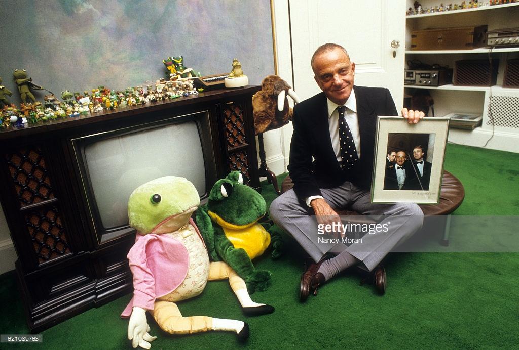 Soviet-connected gay Jewish attorney for Donald Trump Roy Cohn sits with his unusual collection of frogs and toads while holding a photograph of himself with Trump..