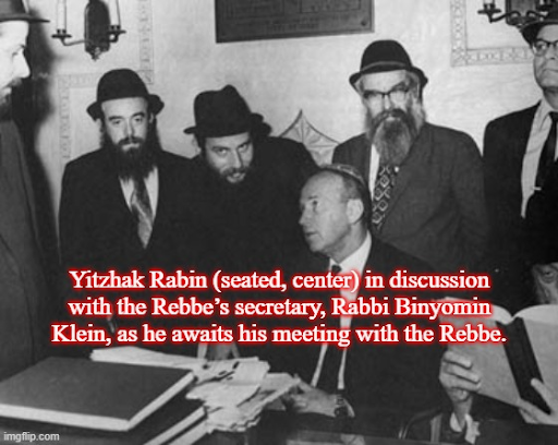 “Prime Minister Yitzhak Rabin met with the Rebbe to discuss Israel’s security concerns.”
