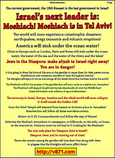 In all, Israel was created to be the seat of the Jewish Moshiach/Antichrist and was a Chabad-Rabbinical project.