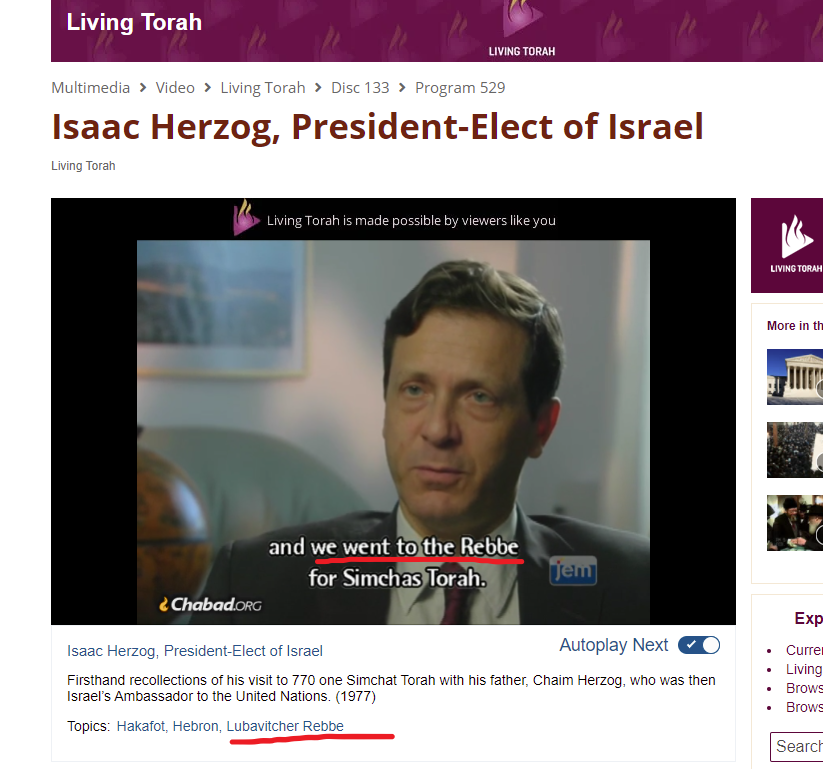 “Yitzhak Navon was very close to the chairman of Aguch, [CHABAD] Rabbi Shlomo Maydanchik, OB”M. Navon also has descendants that are Lubavitch.”