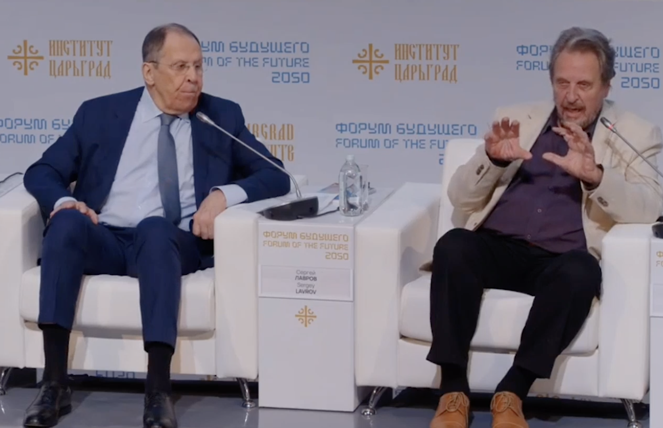 MOSCOW—Russian Foreign Minister Sergei Lavrov with Errol Musk at the "Forum for the Future 2050”, which was organized by Alexander Dugin.