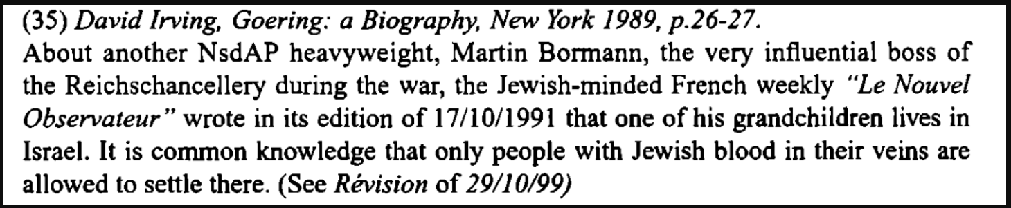 On 21 September 1958, Adolf Bormann said that Nazi leader Robert Ley (originally Levy) was a full-blooded Jew (Institut für Zeitgeschichte, Munich; Aktennotiz Buchheim ZS/1701.)