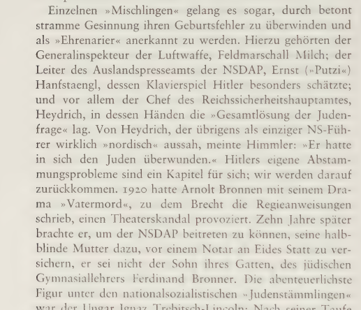 According to the well-informed Diplomat Jörg von Uthmann, who himself was a member of the German Foreign Office for twenty years & a correspondent for German and American publications in Paris, says (Doppelganger du bleicher geselle, p. 46) that the Harvard-educated Ernst Hanfstaengl, a close friend of Hitler & head of the NSDAP Foreign Press Office, was Jewish.