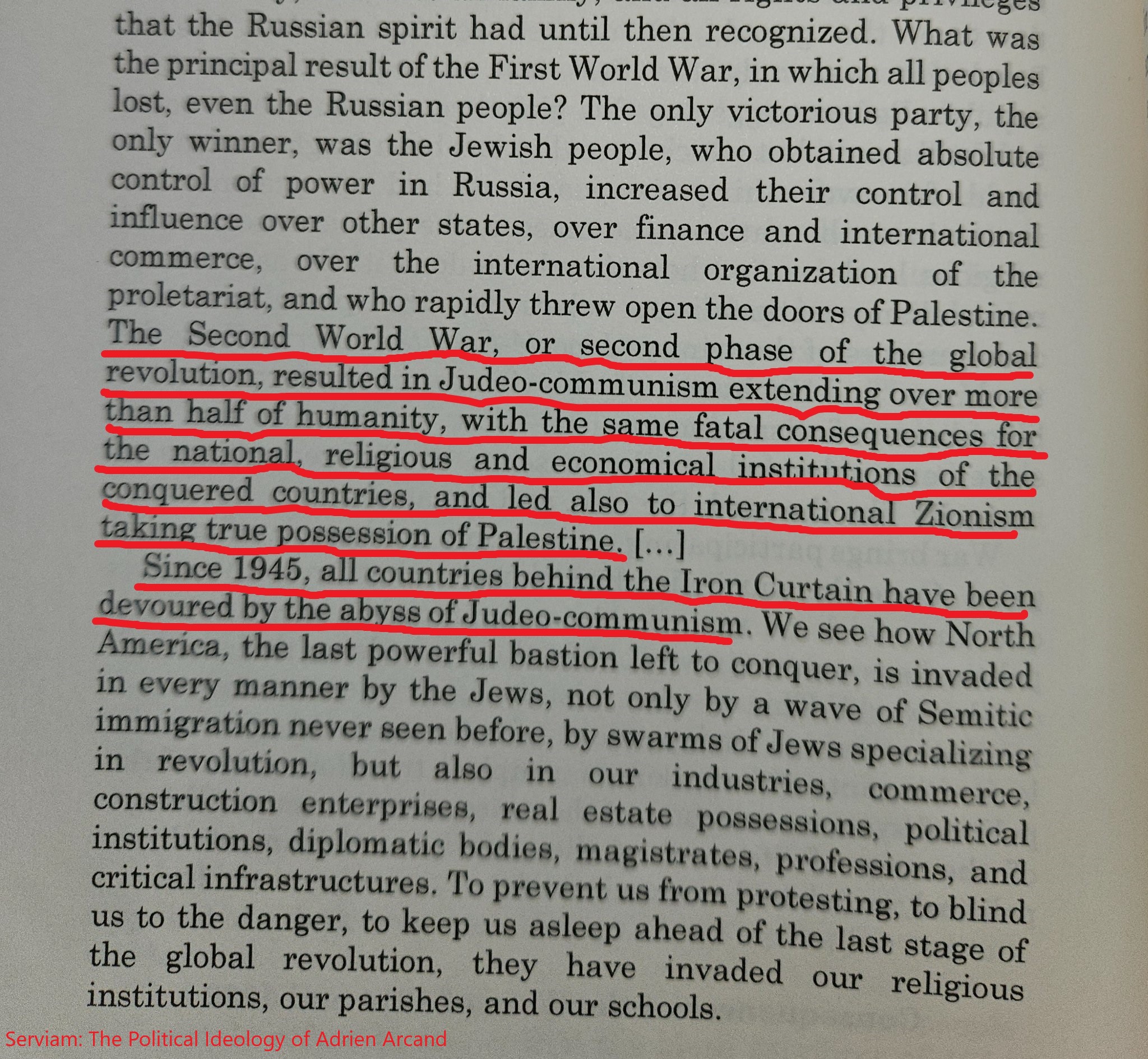 The Journal of Historical Review (1983) Volume 04, Number 2, Page 182: “Only the Jews profited from World War II insofar as they gained their revenge on Nazi Germany as well as spreading Soviet Communism over 40% of the world, not to mention moving great numbers of European Jews into Palestine.”