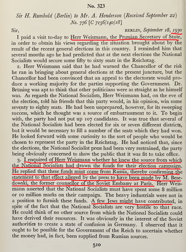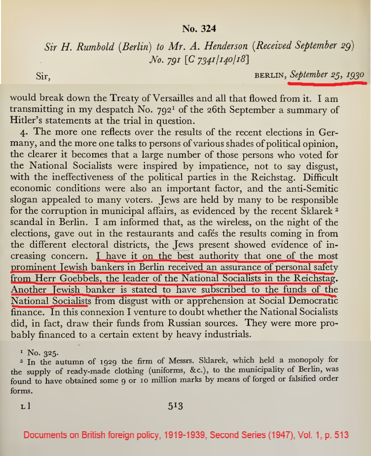 (Some) Evidence NSDAP was financed & supported by Jews & allowed to come to power