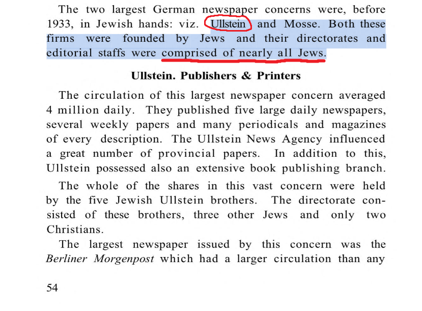 The Jewish Ullstein Publishing House “contributed to Hitler’s rise to power.” (p. 173)