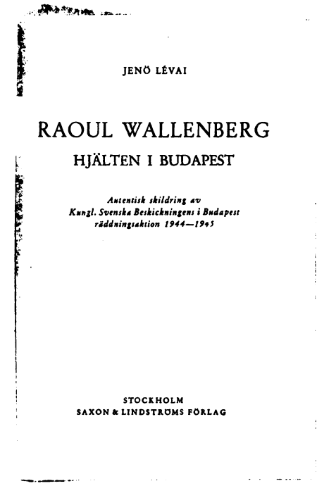 Swedish book - “Raoul Wallenberg” Vol. 4, by Jeno Lèvai