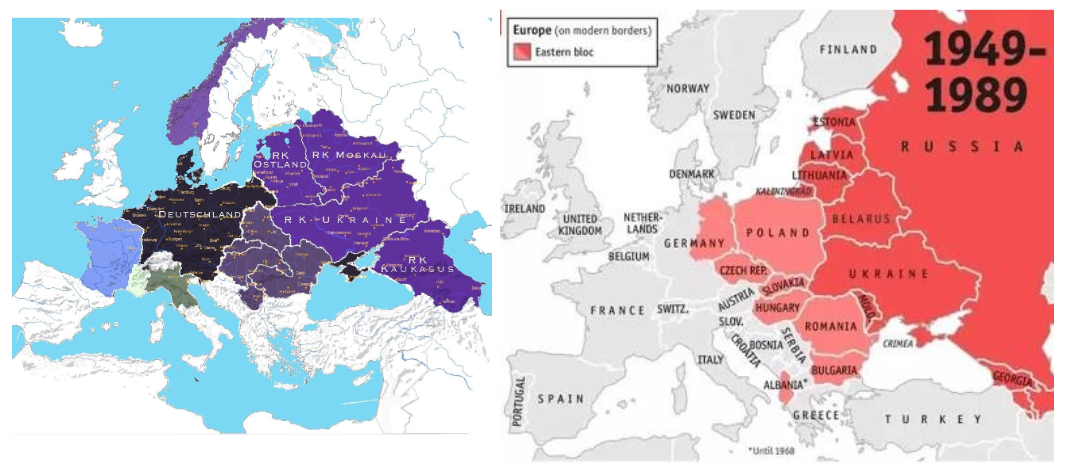 Just so happens that the Nazi Generalplan Ost (left) was the land 'liberated' by the Soviets (right)