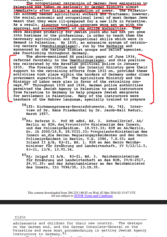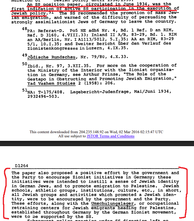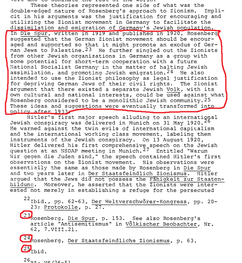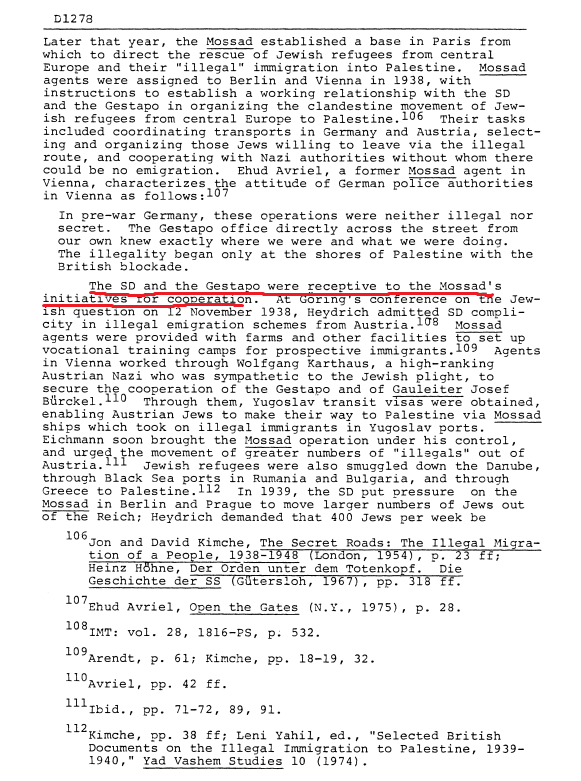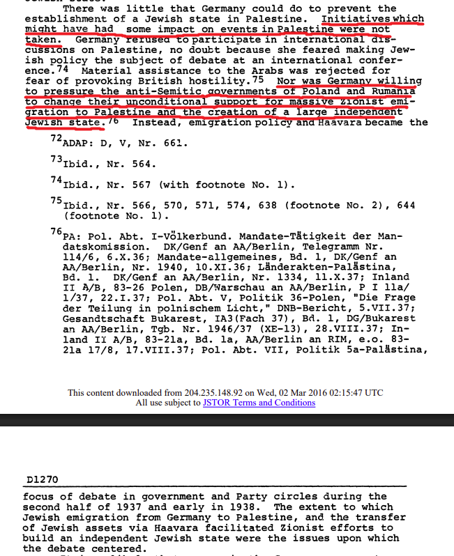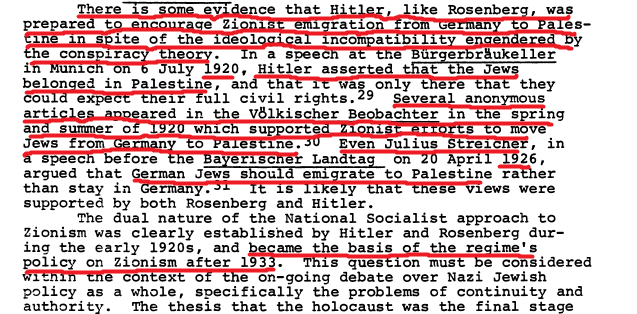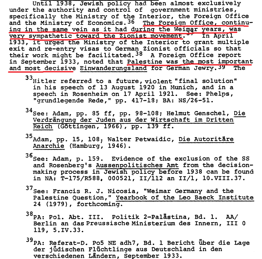 “Hitler himself stepped in and ordered in precise terms the encouragement of Jewish mass immigration to Palestine.” (p. 28)