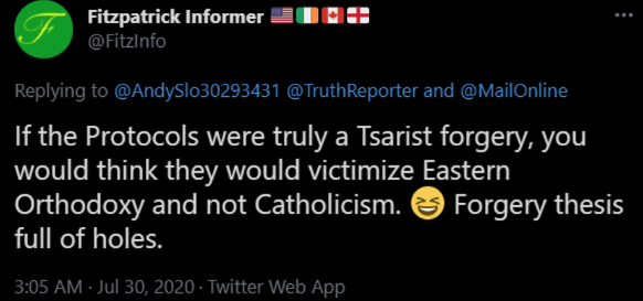 Those who have made in-depth analyses of the subject have shown serious flaws in the standard forgery arguments - Peter Myers made an in-depth critique of Norman Cohn, the leading proponent of the “Protocols as fake” idea, which includes this gem