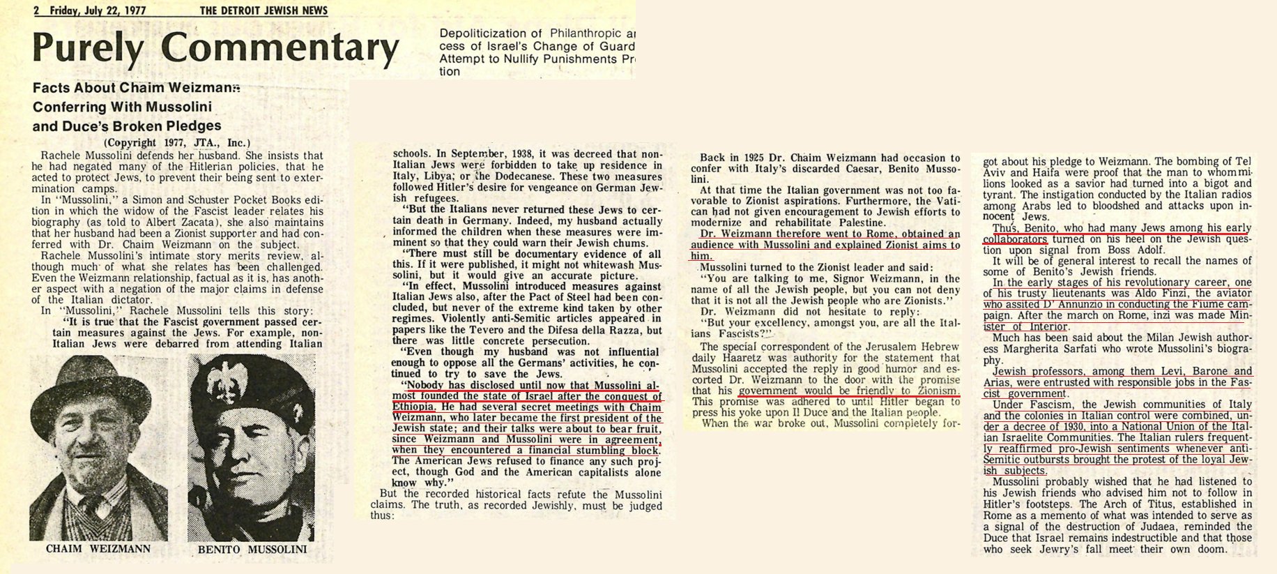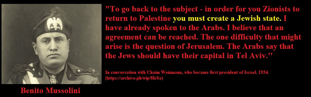 “Mussolini was said to have Jewish blood in his veins. One of his first actions was to stop the anti-Jewish riots and to secure a huge loan from the Jewish money-lenders of New York. His Minister of Interior and the four strongest leaders of the Fascist movement were Jews.”