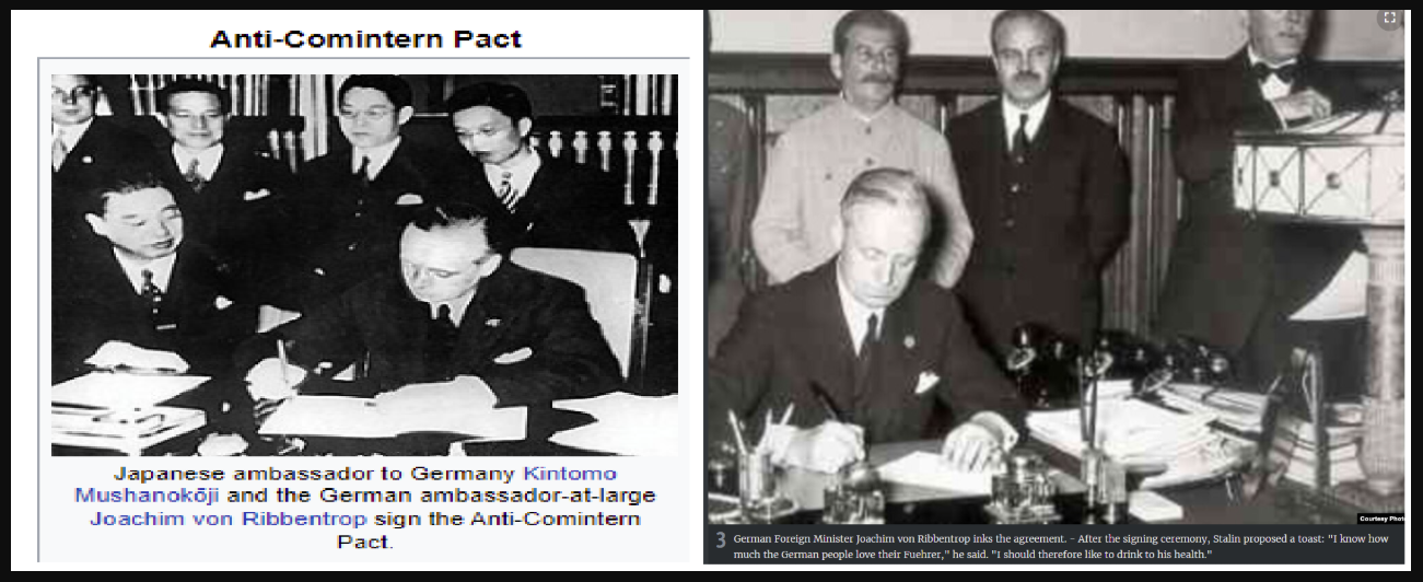The scam that was the 'Anti-Comintern' pact between Germany and Japan.