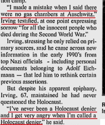 Irving may have some solid scholarship, but still maintained that there was some measure of a 'holocaust'