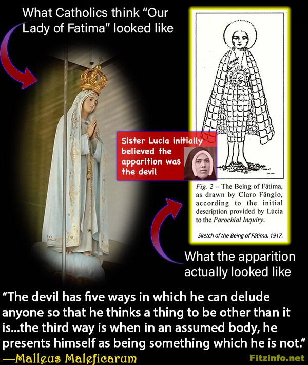 - Sister Lucia expressed confusion, didn’t know if Fatima apparition was Mary or the devil (Lucia’s journal: “Memórias da Irmã Lúcia I”, pp. 85-87.)